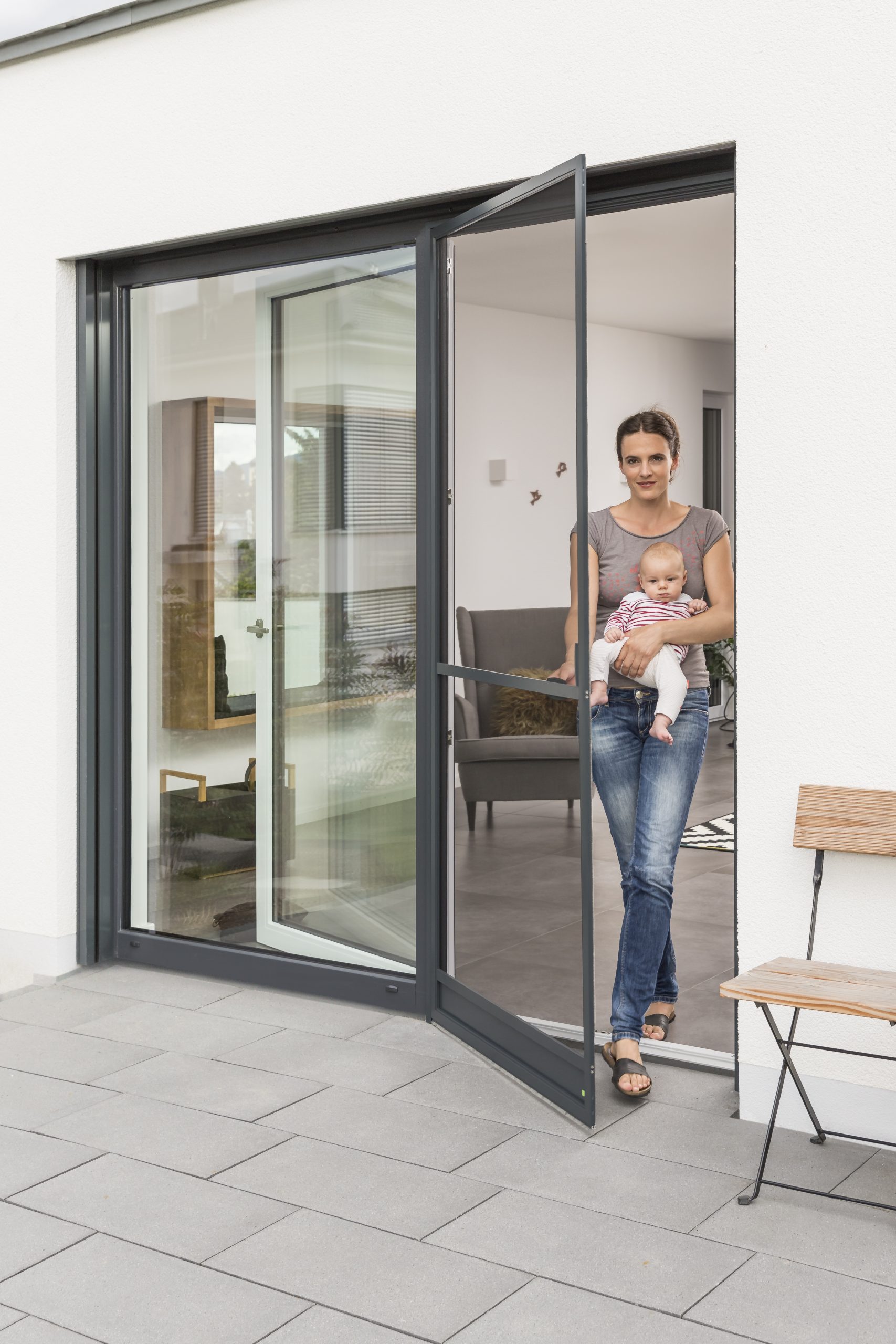 Für noch mehr Flexibilität bieten wir Insektenschutz-Pendeltüren an, die sich sowohl nach innen als auch nach außen öffnen lassen. Diese Türen sind besonders praktisch, wenn Sie keine Hand frei haben, um die Tür zu öffnen. Sie schließen automatisch und sorgen so dafür, dass keine Insekten ins Haus gelangen.
